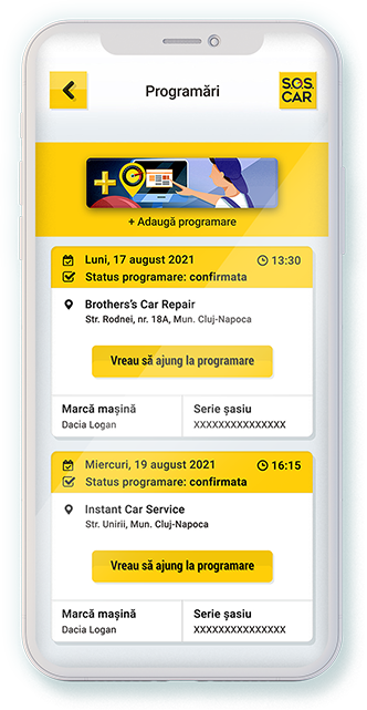 În S.O.S. Car găsești rapid service-ul potrivit mașinii tale și programul tău, iar aplicația te conduce la service-ul ales.